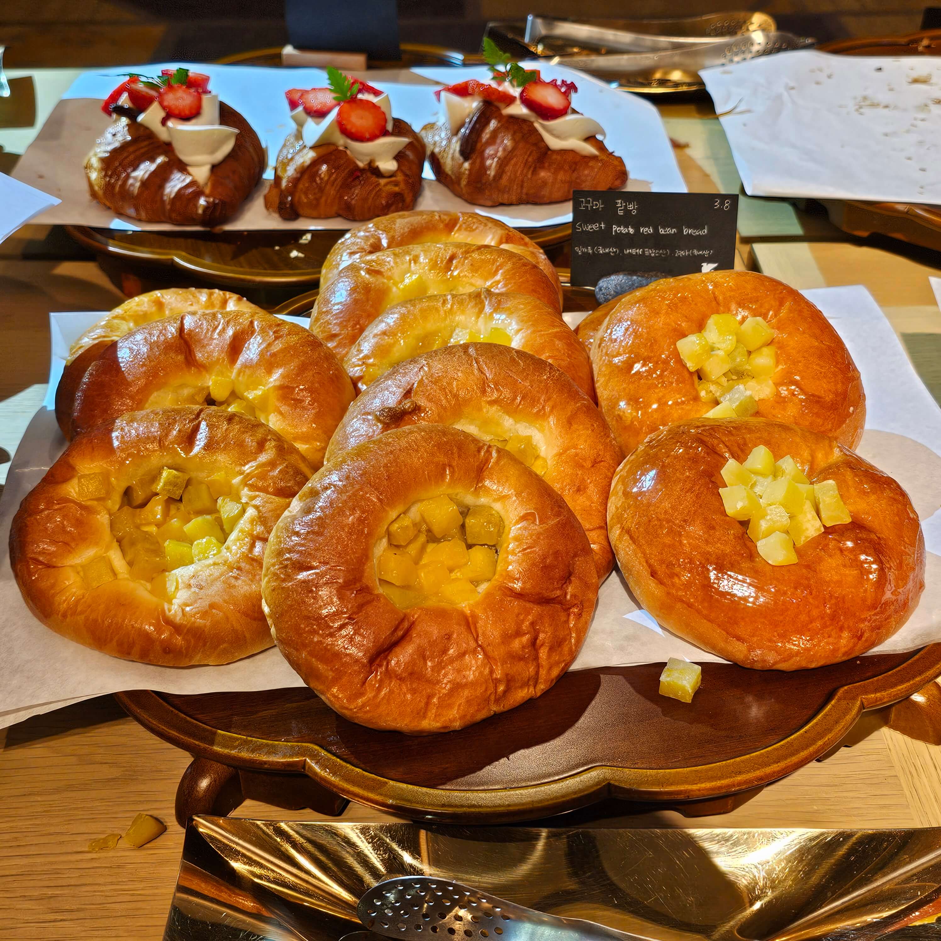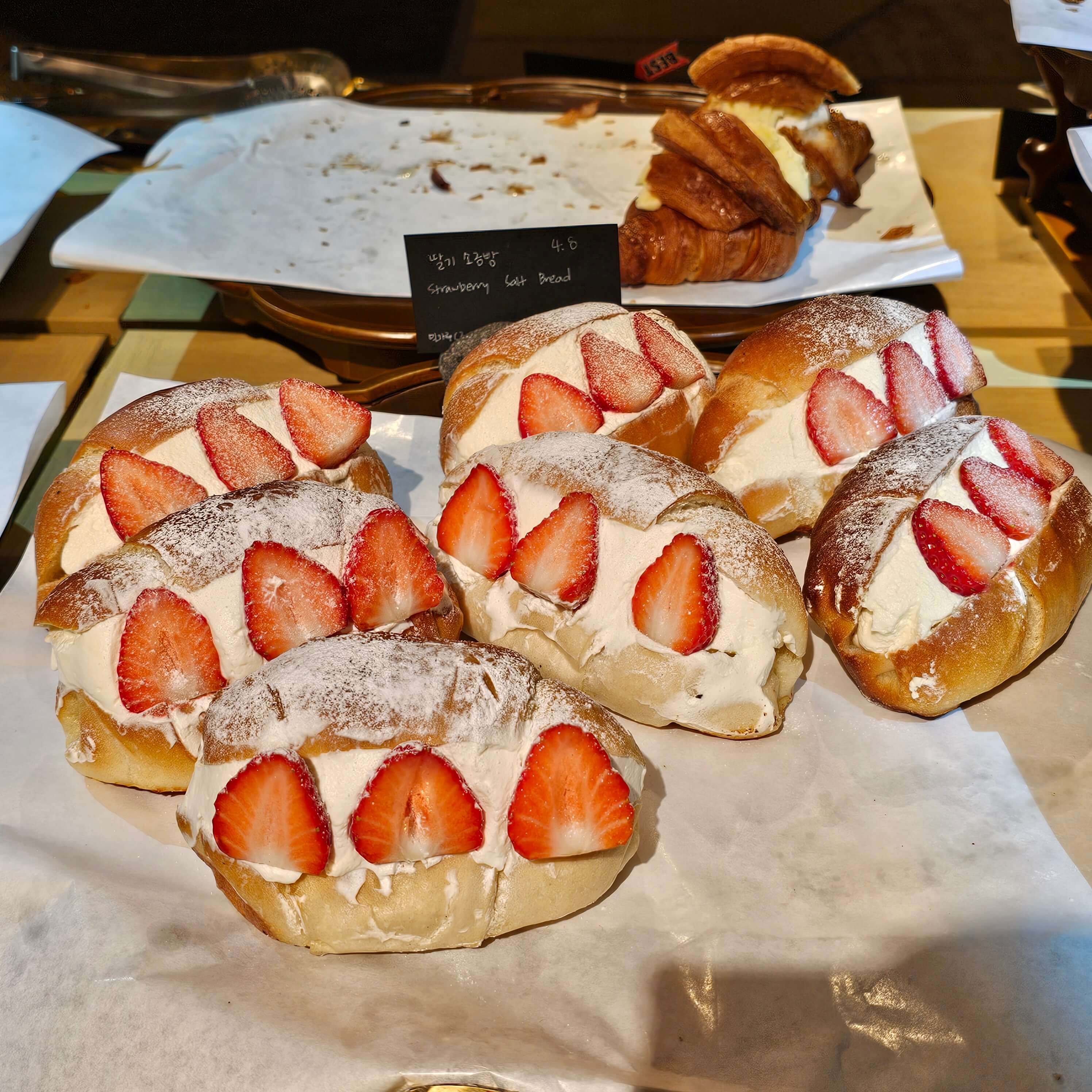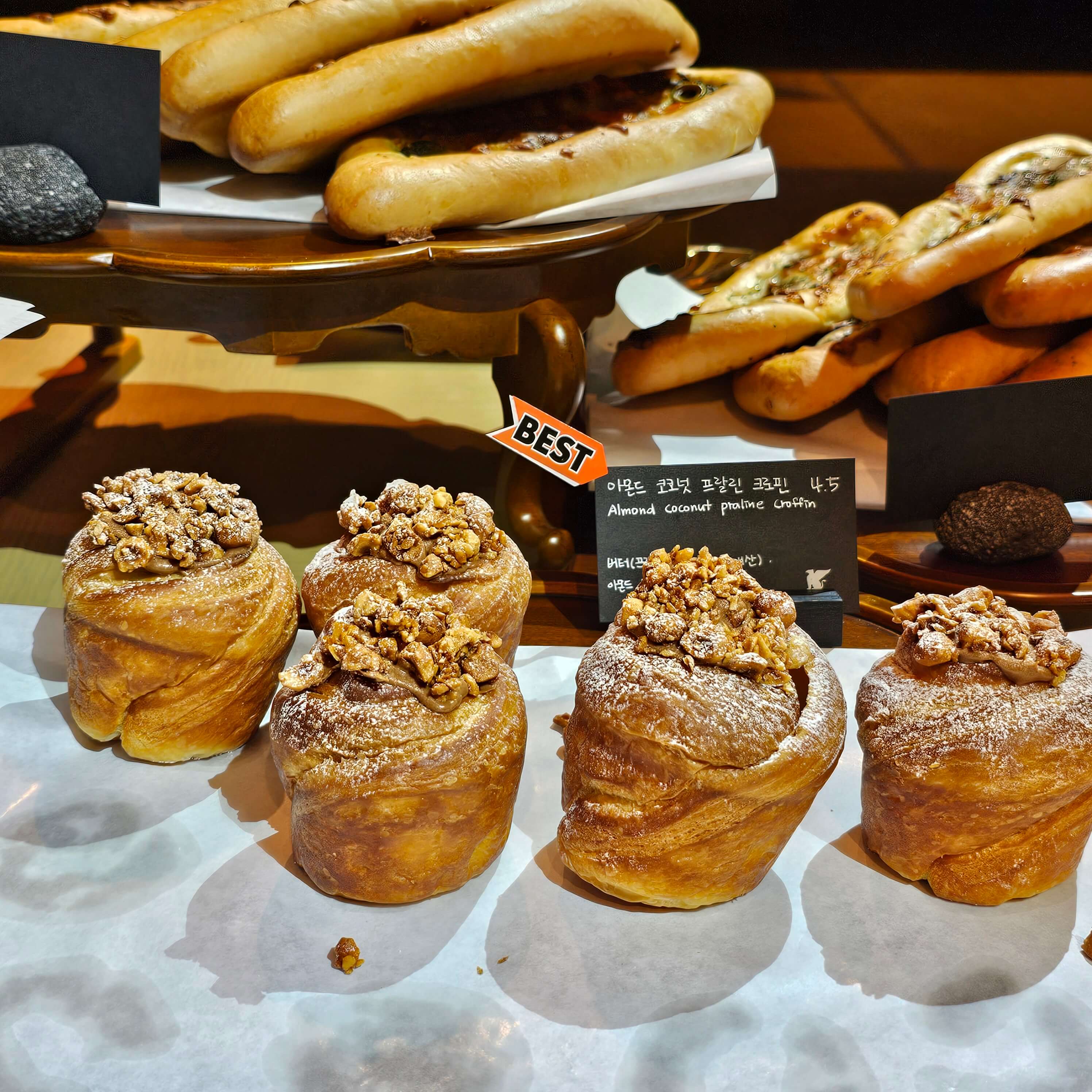 들어가자마자 베이커리 테이블이 맞이 해 줍니다. 빵의 종류도 많았고, 가격도 생각보다 비싸지 않았습니다. 그리고 시간이 지나면 새로운 빵들이 등장했습니다.