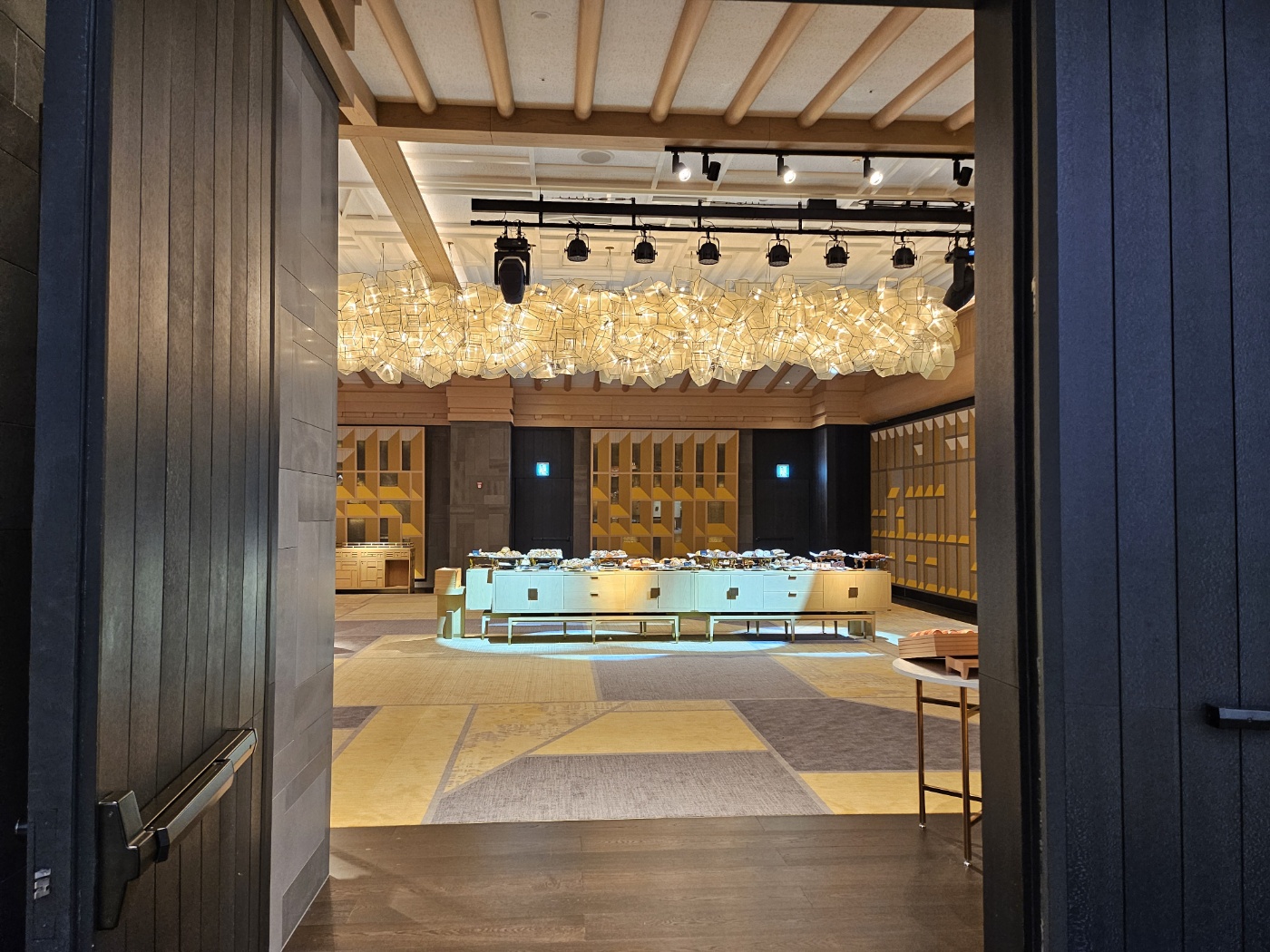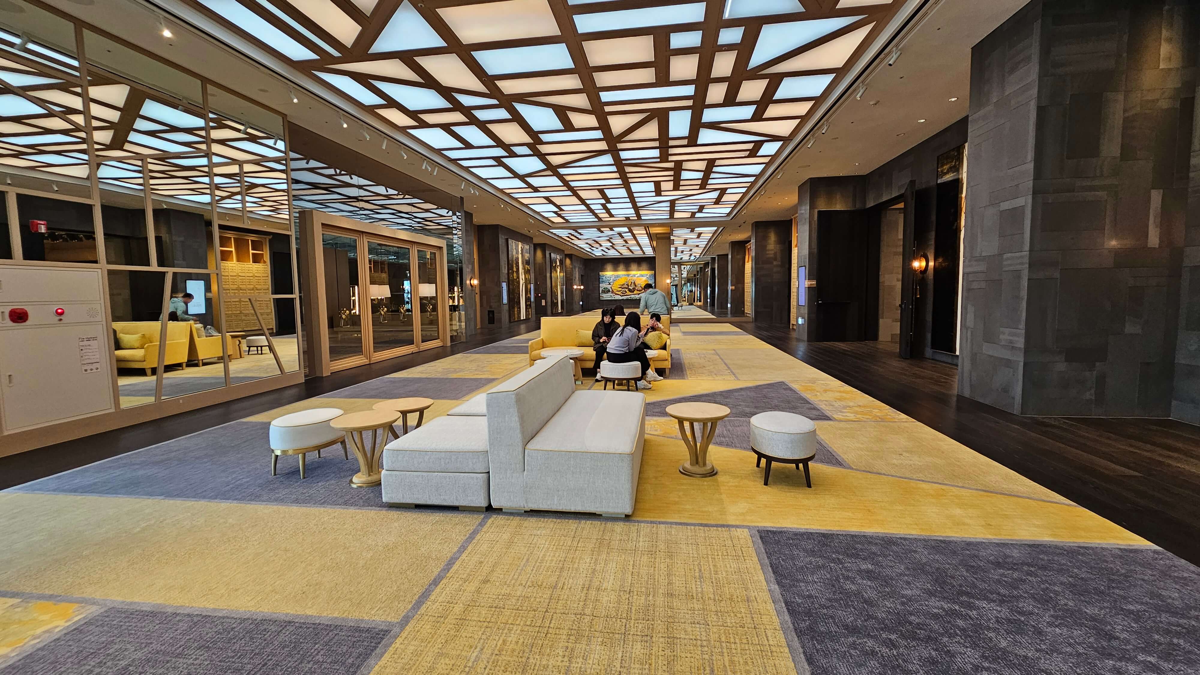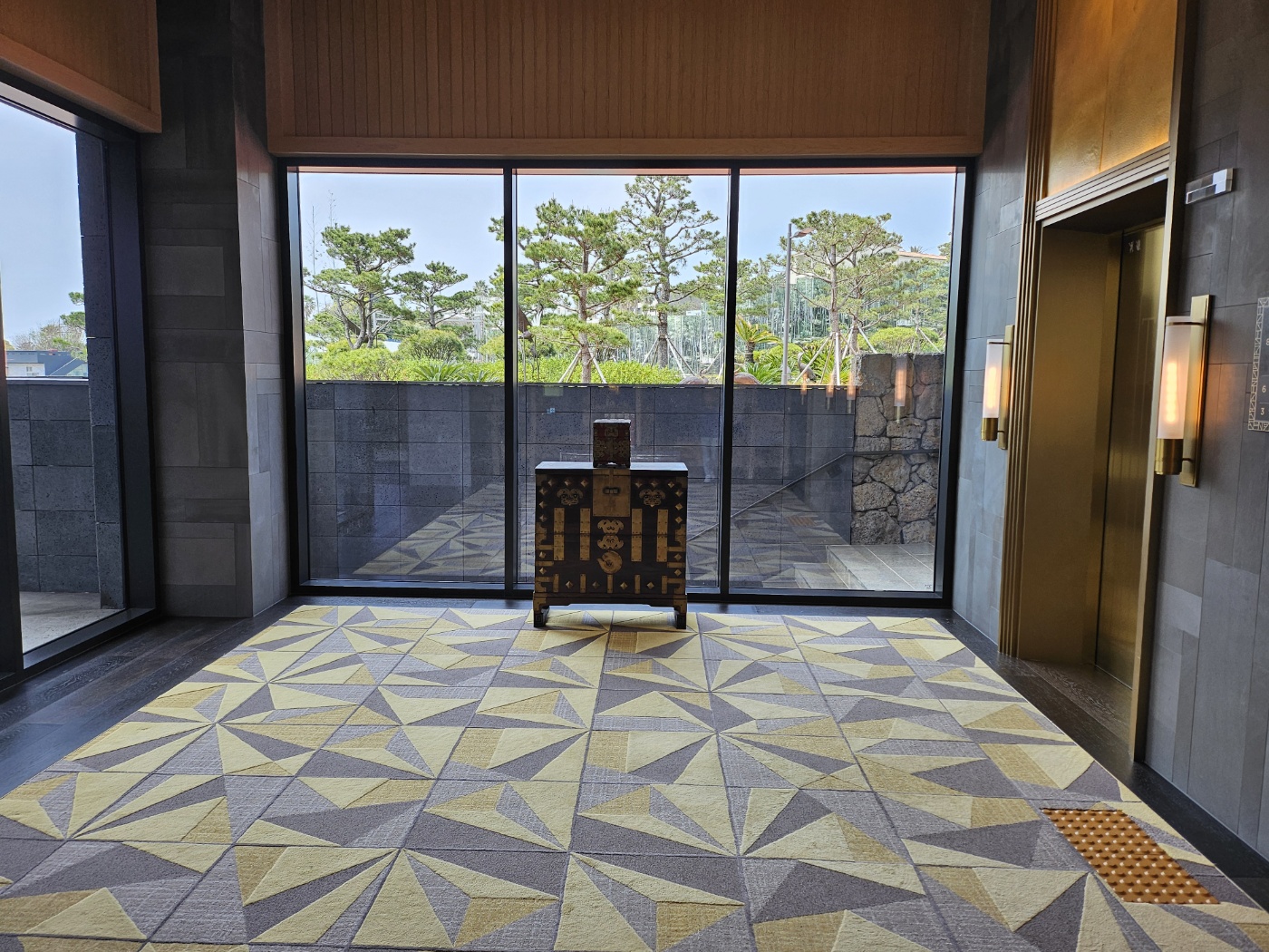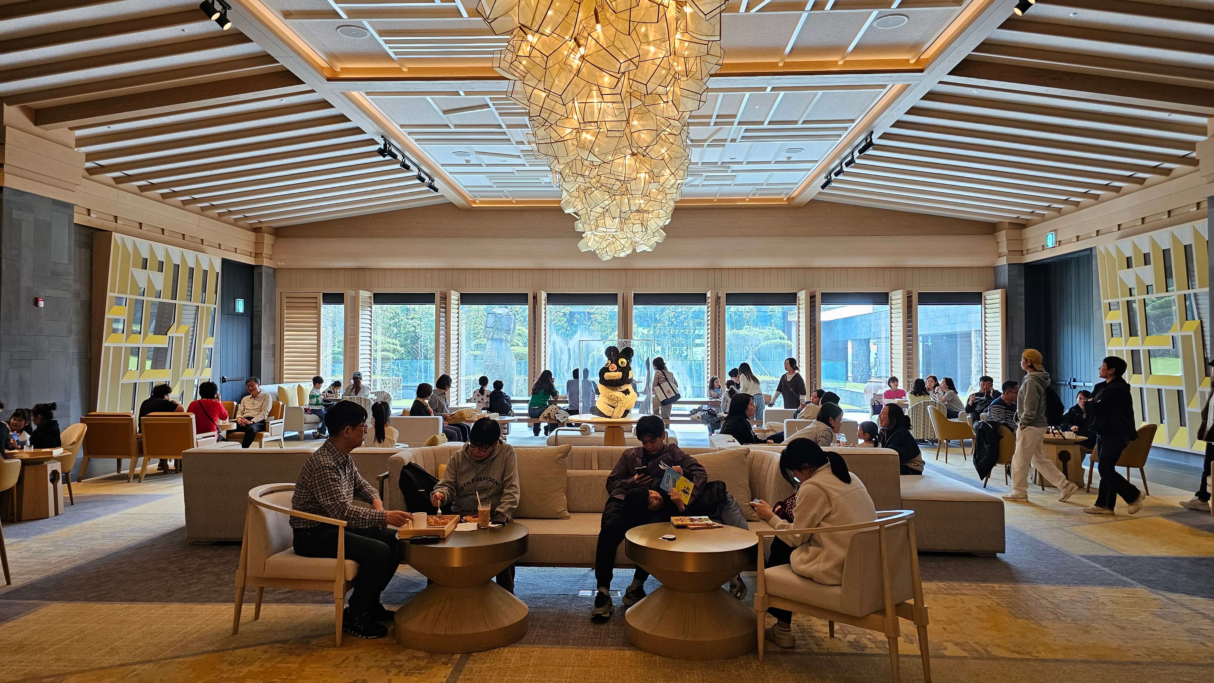 JW 메리어트 엘리베이터 6층에 내리면 바깥의 풍경도 볼 수 있고 넓은 홀과 그 뒷쪽으로 댄싱 두루미를 만날 수 있습니다.