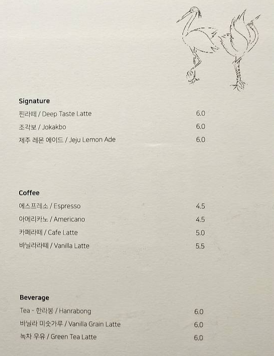 4. 댄싱 두루미 카페, 음료